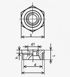 | Діаметр умовний Ду, мм | S, мм | L, мм | h1, кг | Різьба |