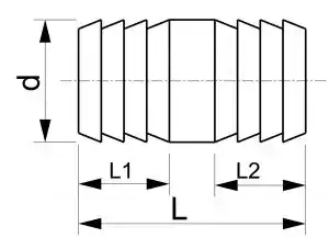 Штуцер двосторонній сталевий виготовляється з такого матеріалу як труби сталеві водогазопровідні ГОСТ 3262-75. (ДСТУ 8936:2019). З обох сторін з’єднання типу «ялинка». На з’єднання типу «ялинка» рекомендується використовувати додатково хомут